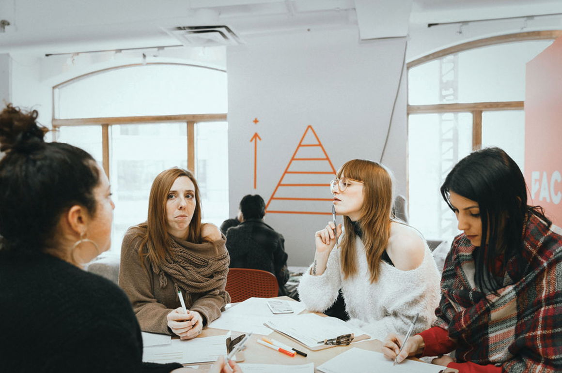Design Thinking projects are always done in teams, whereby the collective intelligence of a cross-functional group is brought together through intense collaboration. The various backgrounds of group members, be it in engineering, human resources, arts, or philosophy, are gathered to bring together a range of perspectives that allows problems to be viewed from a variety of angles. Truly breakthrough solutions can be generated when the various disciplines come together to create something that didn't exist before.