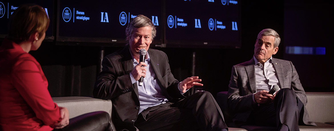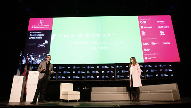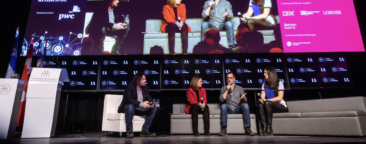 The Strategic Forum on Artificial Intelligence was organized by the Chamber of Commerce of Metropolitan Montreal. It was made possible by our main partner PwC Canada and the invaluable cooperation of our Gold sponsors: CGI, Lavery lawyers, Microsoft, the Direction régionale de Services Québec de l’Île-de-Montréal, RBC and Ubisoft; and our Silver sponsors: IBM, Investissement Québec, Le Devoir and the Montreal Gazette; and our Bronze sponsor the Caisse de dépôt et placement du Québec.